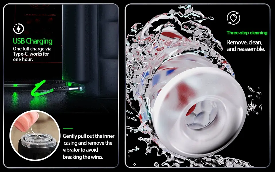 4. Double Orifice d’Utilisation: Comprend un tunnel intégré et une gaine vaginale magnétique. Alternez librement entre une insertion fluide et une sensation ultra-réaliste serrée pour deux expériences totalement distinctes.